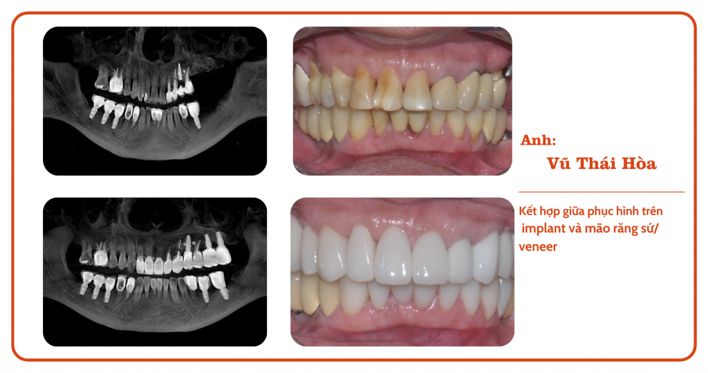 Quá trình điều trị của anh Hòa diễn ra theo đúng kế hoạch và đạt được kết quả ngoài mong đợi. Các trụ Implant được cấy ghép thành công, mão răng sứ và Veneer được chế tác tỉ mỉ, phù hợp với khuôn mặt và sở thích của anh.